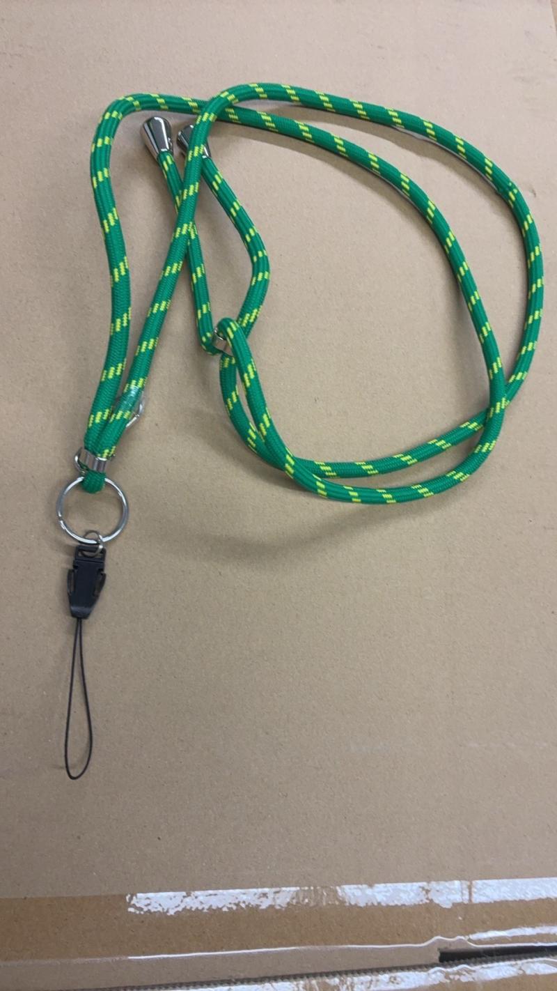 アウトドアロープのような丸紐デザインが特徴のネックストラップ。